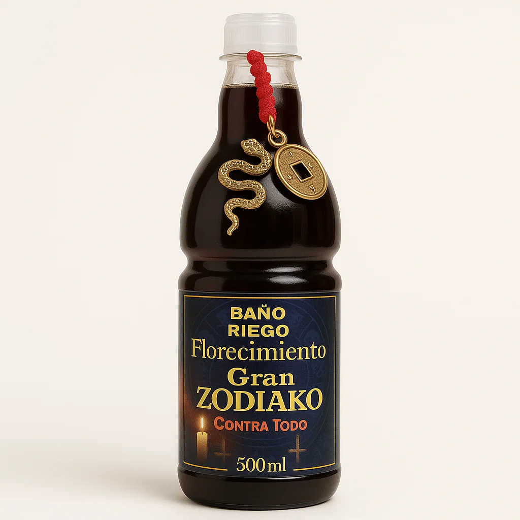 Experimenta la magia del Baño y Riego de Florecimiento Gran Zodiaco, un producto exclusivo de Diosa de la Fortuna, tu distribuidor de esotéricos en Santo Domingo, Ecuador. Esta fórmula única de 500 ml, decorada con una serpiente dorada y cordones rojos y azules, está creada para rituales de limpieza energética y atracción de prosperidad. ¡Solo disponible en Diosa de la Fortuna!