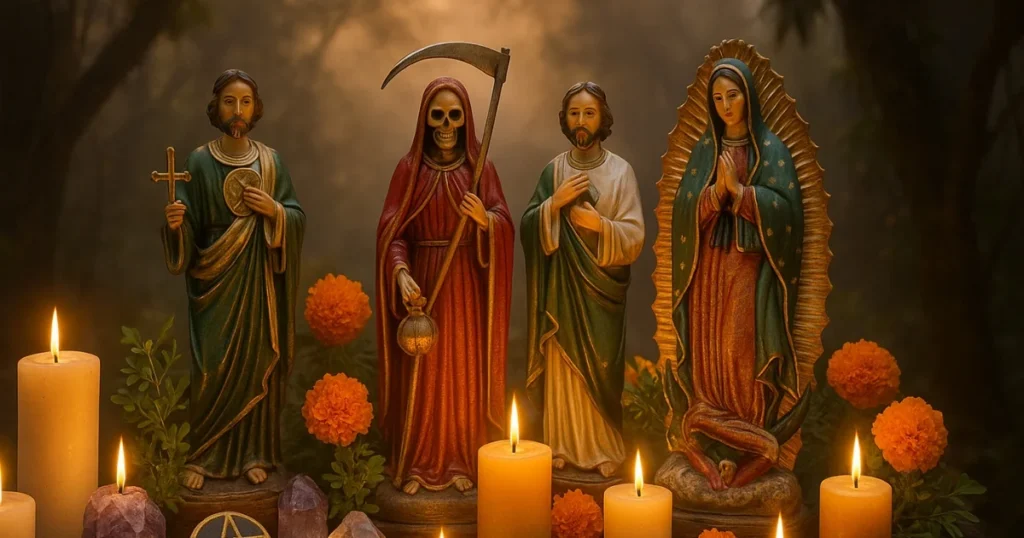 - Velas: Representan la luz y la intención; cada color (rojo, blanco, amarillo) tiene un propósito.