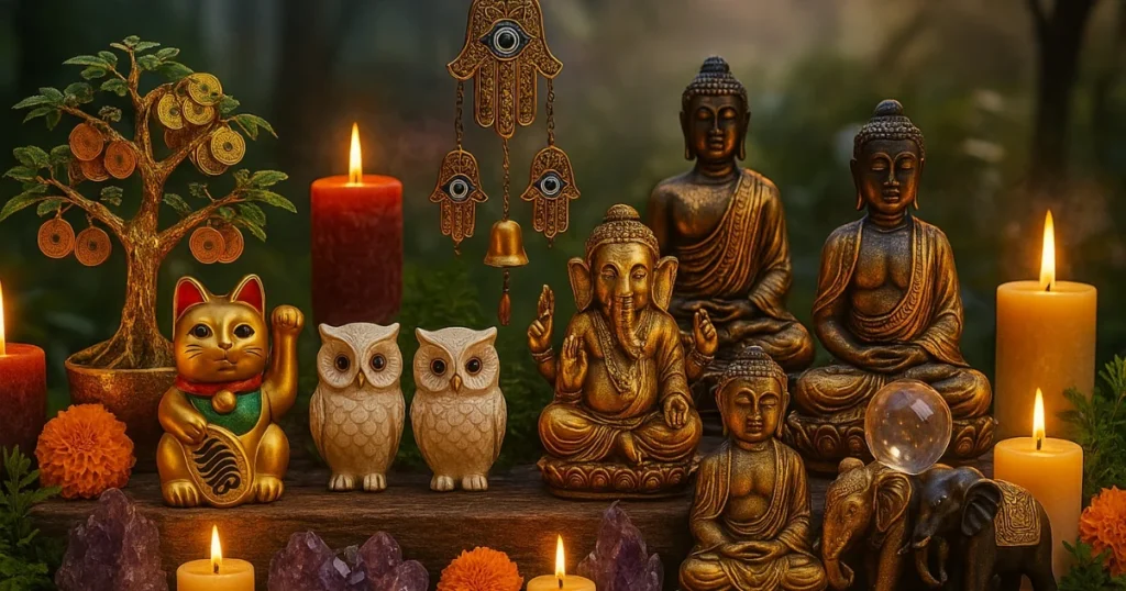 - Amuletos y talismanes: Ofrecen protección o buena suerte.